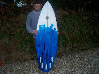 5ft 5" X 19 1/4" X 2 1/4" performance small to medium wave board. Low nose rocker medium tail.